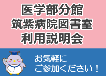 医学部分館および筑紫病院図書室では、図書館を有効に利用してもらうことを目的として、図書館利用説明会を開催します。下記要領でお申込みいただき、授業や文献検索の勉強会などにご活用ください。